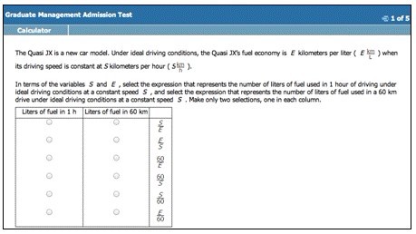 题型描述:题目包含了文本和图表,考生在阅读完文本之后需要从图表中选择出每一栏相对应的正确答案。此题型考查了考生评估两者权衡、解决联立方程以及辨别两者关系的能力。