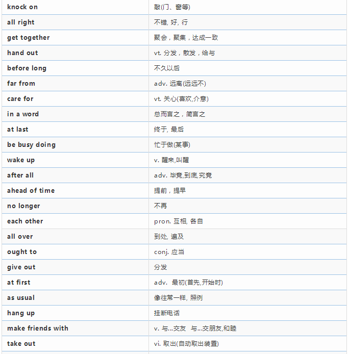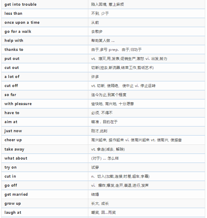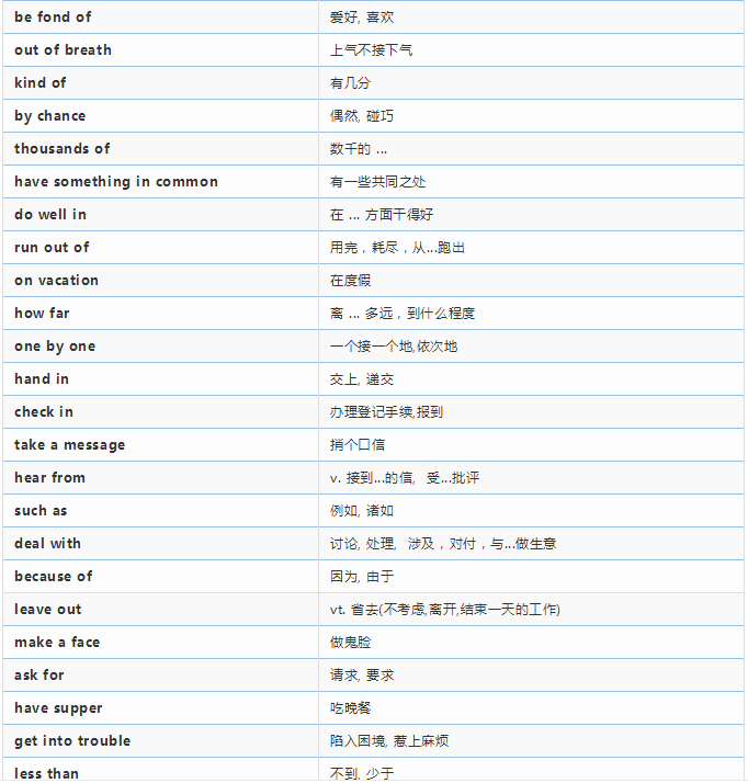 初中开始,短语搭配逐渐成为考试中的绝对重点内容。掌握短语、固定搭配不仅对于听力、阅读题目可以做到事半功倍,更是可以促进写作水平的迅速提高。牢记英语短语势在必行,下面为大家分享初中英语必备核心短语,想要学好英语并且考高分的话,就赶紧背起来吧!