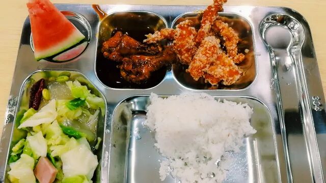 报道、分班忙碌了一下午,餐厅早已为大家准备好了丰盛的晚餐,两荤两素还有水果与饭后汤,用充足的营养来保证同学们的学习精力。