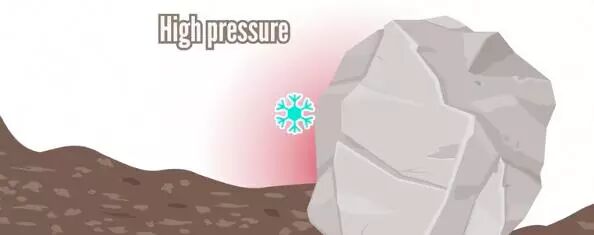 当冰川的底部遇到大的障碍物比如大的石头的时候,受阻力一侧的压力会使冰融化,从障碍物侧边绕过然后在另一边凝固,随着这个流程,冰川受重力驱使一直前进,这就是冰川可以一直移动的原因啦~