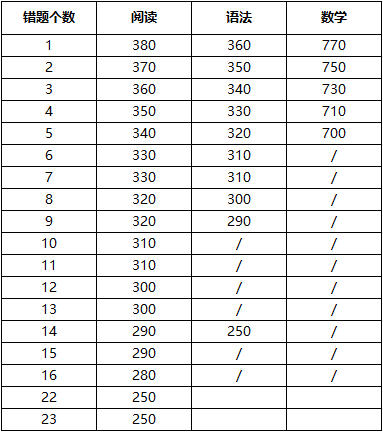而数学则更狠,去年错5个的同学可以得到770分,而今年5月亚太错5个的同学只有700分。
