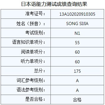 今年7月,在炎炎夏日的试炼中,我参加了N1级别日本语能力测试。最终取得了听力60分、阅读60分、词汇语法55分,总分175分的好成绩。是的,这是努力之后的成果,但要说除了努力之外有什么秘诀的话,我想就是学习习惯了。