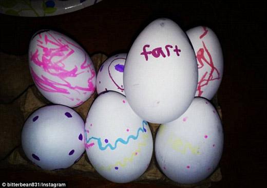 One mother left her children alone to decorate eggs, only to come back and find the word 'fart' written across them.