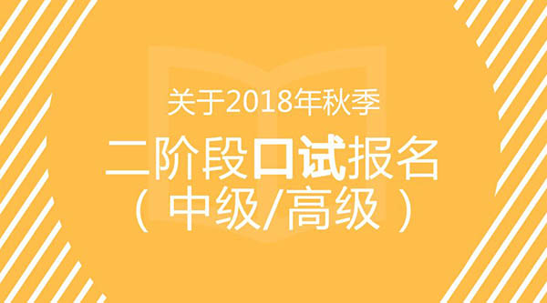 2018年秋季英语高级、英语中级和日语中级口译二阶段考试(口试)将于2018年11、12月举行,现将相关事宜通知如下: