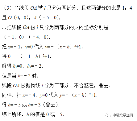 (3)当线段OA被l只分为两部分,且这两部分的比是1:4时,求h的值.
