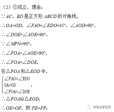 (2)①根据正方形的性质和旋转的性质证明△FOA≌△EOD,得到答案;