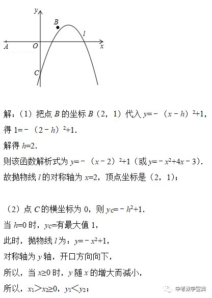 (2)把点C的坐标代入函数解析式得到:yC=﹣h2+1,则由二次函数的最值的求法易得yc的最大值,并可以求得此时抛物线的解析式,根据抛物线的增减性来求y1与y2的大小;