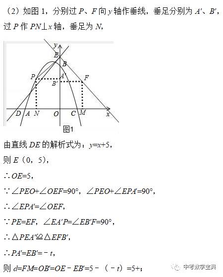 (2)如图1,作辅助线构建两个直角三角形,利用斜边PE=EF和两角相等证两直角三角形全等,得PA′=EB′,则d=FM=OE﹣EB′代入列式可得结论,但要注意PA′=﹣t;