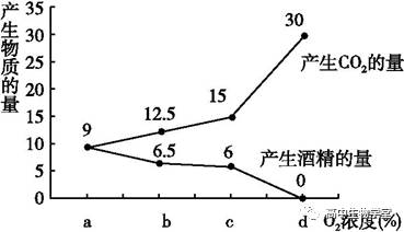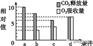 【例4】在a、b、c、d条件下,测得某植物种子萌发时CO2和O2体积变化的相对值如图。若底物是葡萄糖,则下列叙述中正确的是()