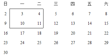 例3 下表是2011年12月的日历表,请解答问题:在表中用形如下图的平行四边形框框出4个数,
