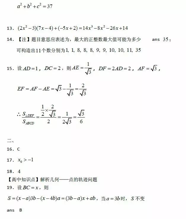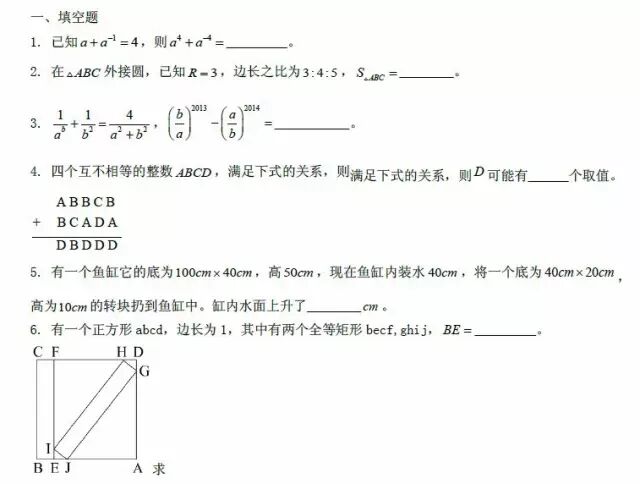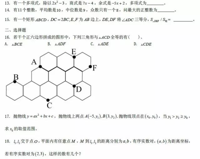 2018上海自主招生:华师大二附中自招数学卷(附答案)