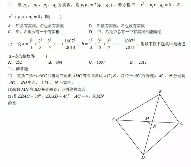 2018上海自主招生:上海中学自招数学卷(附答案)