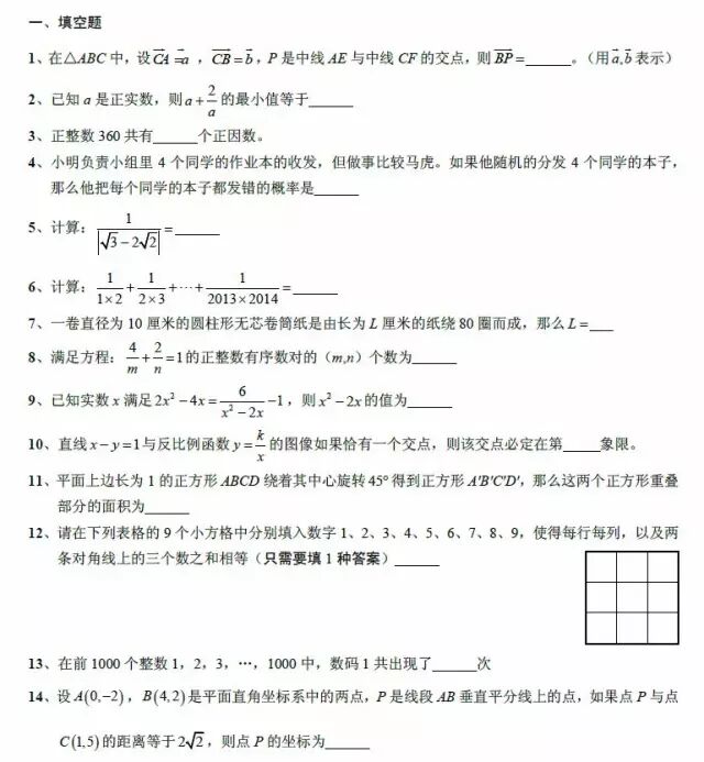 2018上海自主招生:交大附中自招数学卷(附答案)