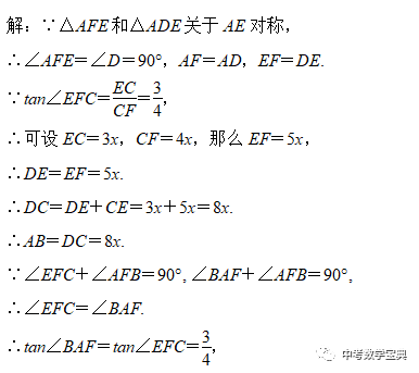折叠矩形,可以得到“轴对称”的图形,对于线段相等、对应角相等、对应的三角形全等;由锐角的正切值可以转化为相应直角三角形的直角边之比;在直角三角形中,利用勾股定理可以列出方程解决问题。