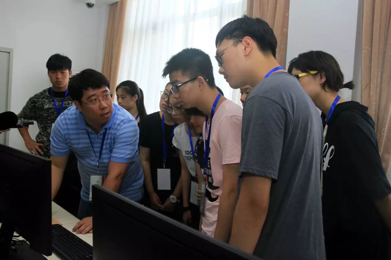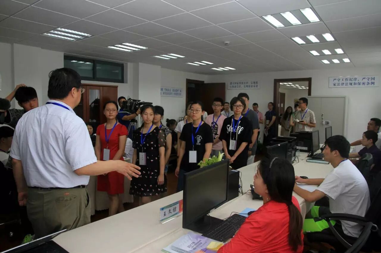图为录取管理组负责人带领考生代表参观高招录取现场