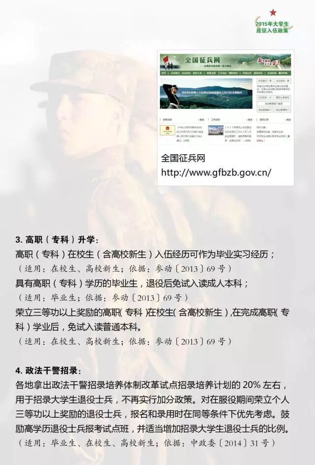 今年高校学生参军入伍有啥新政策?如何选用培养?如何复学升学?就业都有哪些方向?教育部高校学生司、国防部征兵办公室、全国高等学校学生信息咨询与就业指导中心、全国征兵网制作的宣传手册对这些问题进行了详细说明。