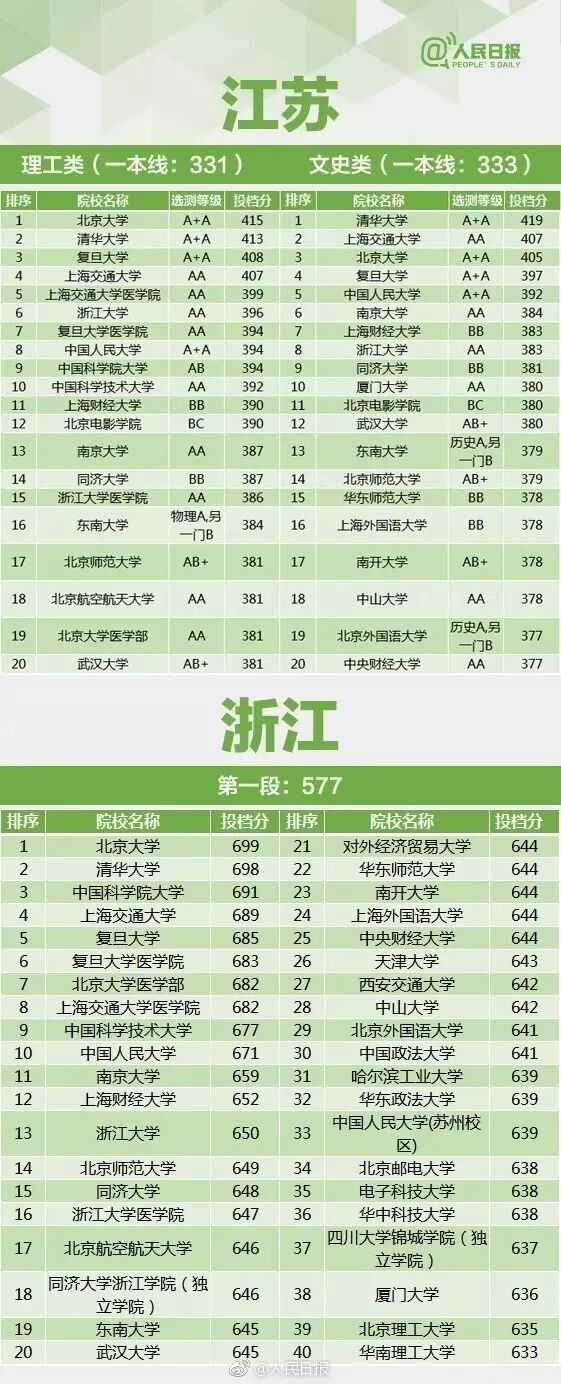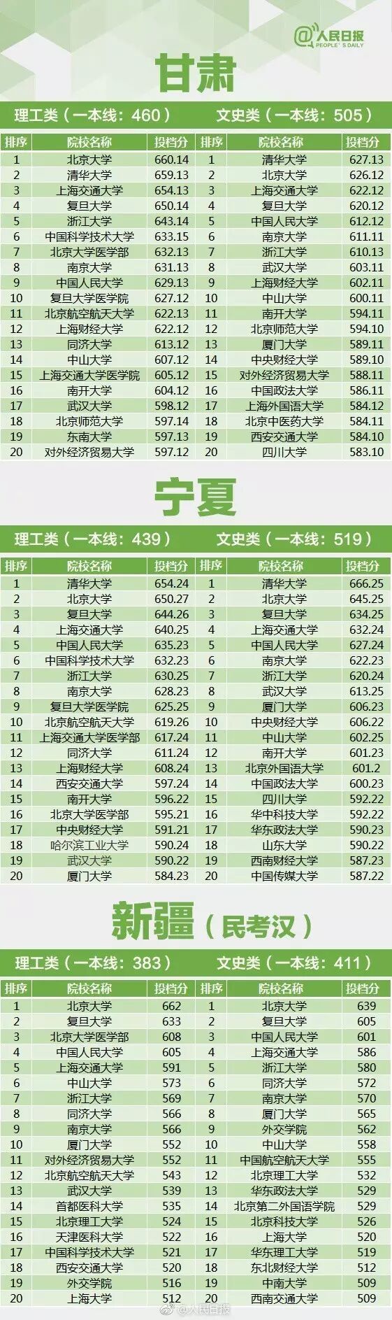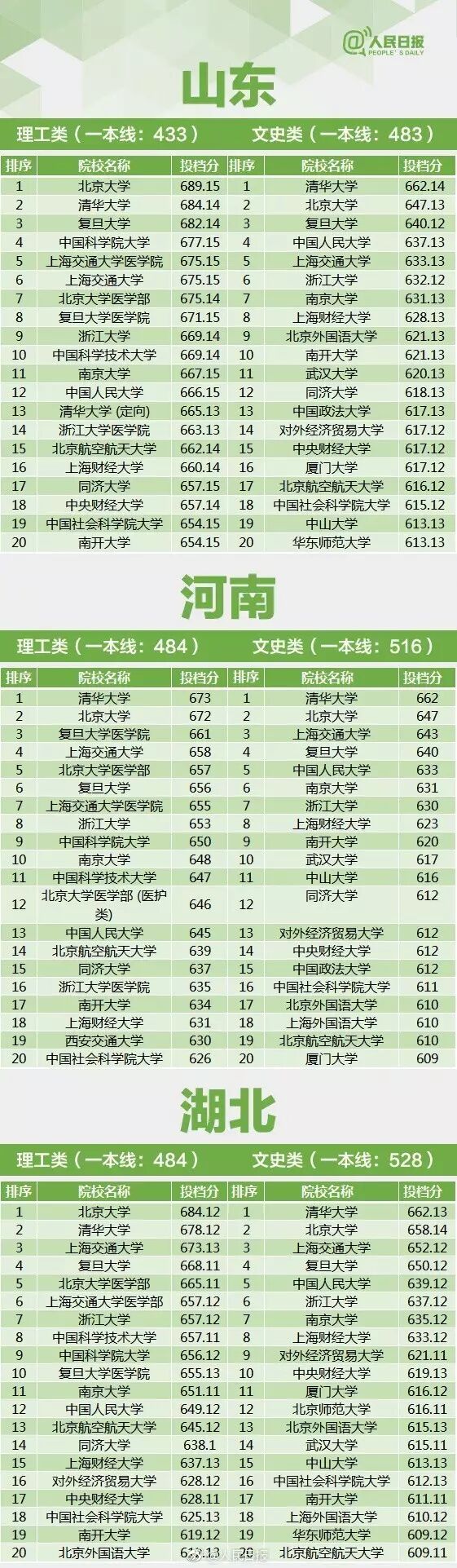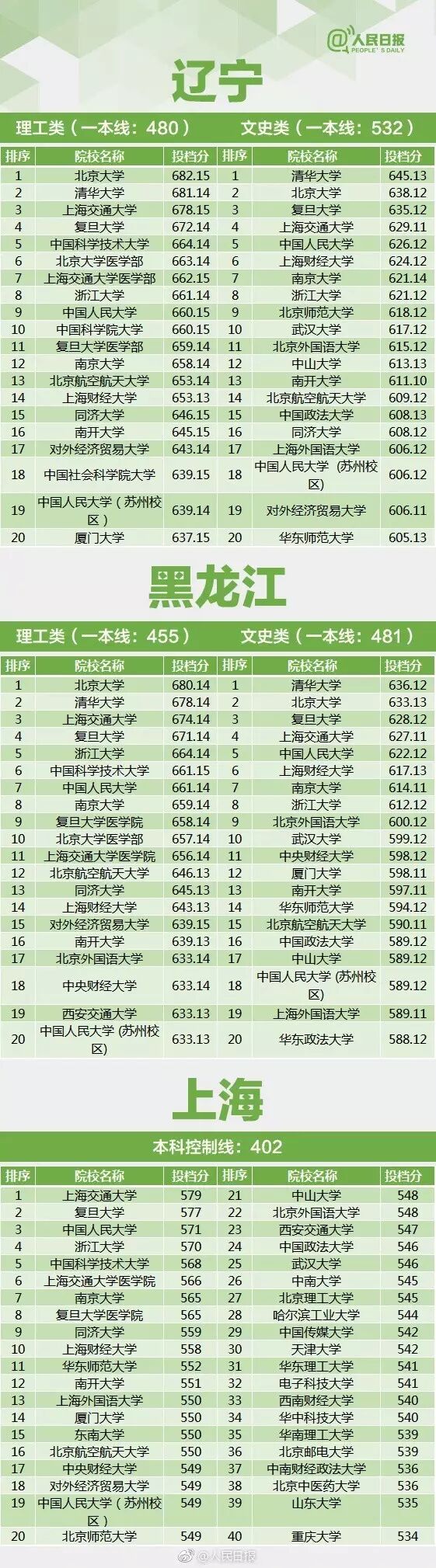 错。尽管在上海地区的投档线排行榜上没有看到北大清华的踪影,如果你觉得那是上海人不屑于去北京读书,或者说北京两大高校没在上海地区投放高招计划,那你真是too young too naive~